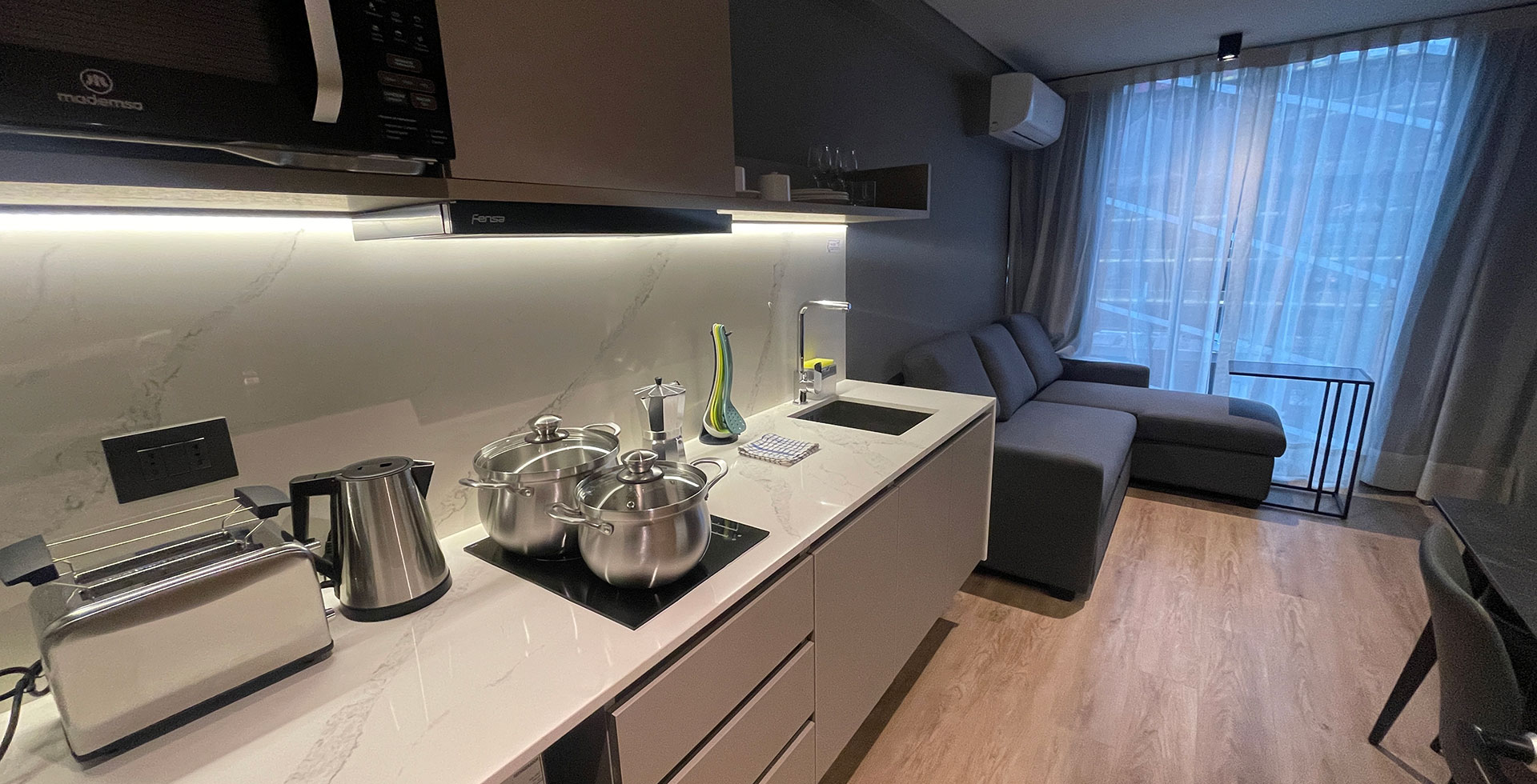 Departamentos tipo Studio (Accesible), 1 y 2 dormitorios con capacidad de hasta 5 personas.
