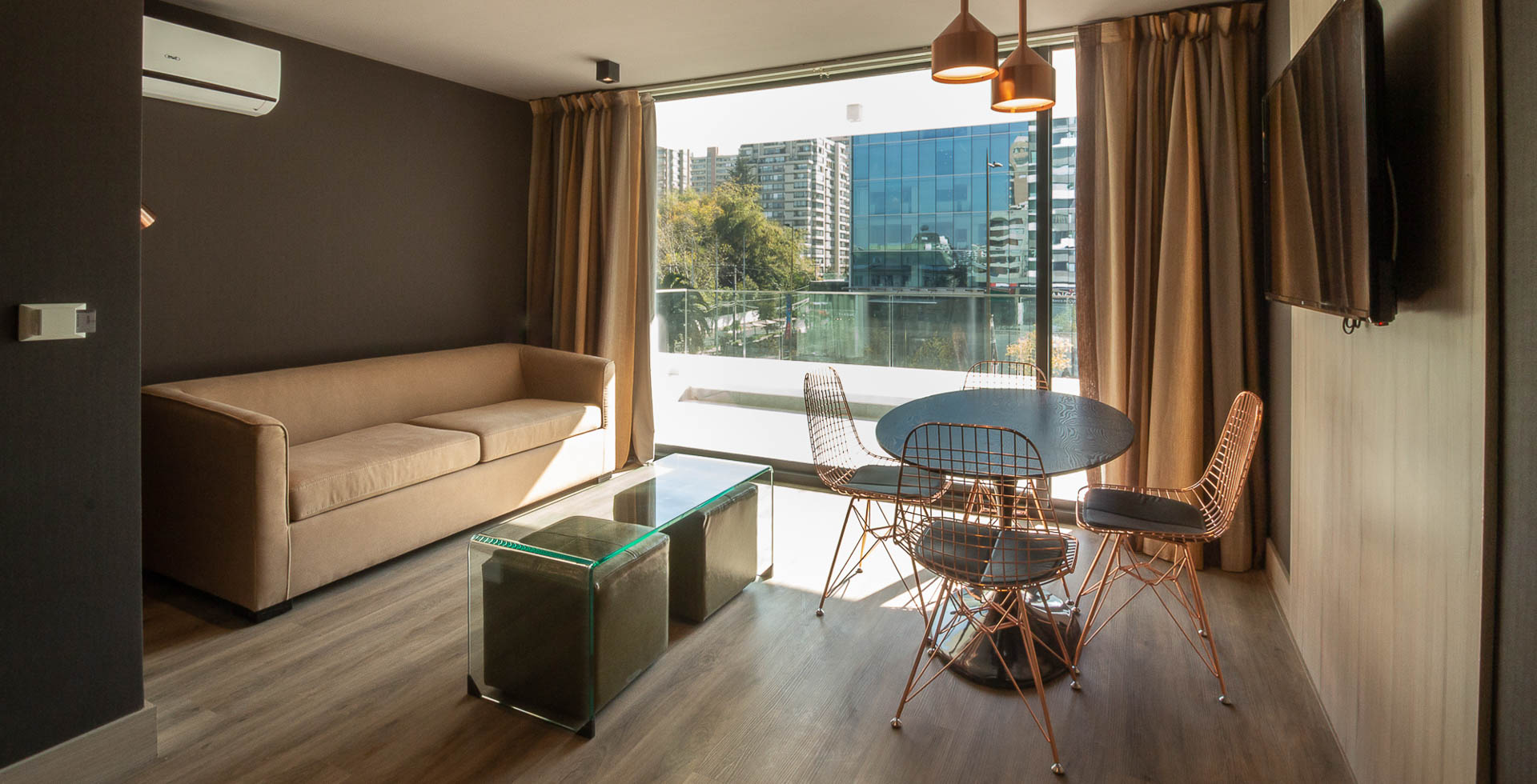 ONE NK Apartments, es un nuevo concepto en alojamiento para arrendar por días, semanas o meses. Todos nuestros departamentos cuentan con sofisticados detalles de arquitectura, diseño y equipamiento, ofreciendo gran amplitud en cada espacio. Una propuesta pocas veces vista, departamentos nuevos, full amoblados y equipados, en un edificio exclusivo sobre Avenida Apoquindo en el corazòn de la comuna de Las Condes.