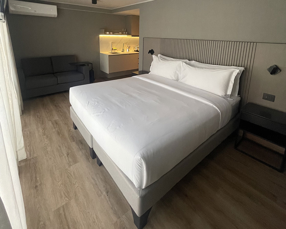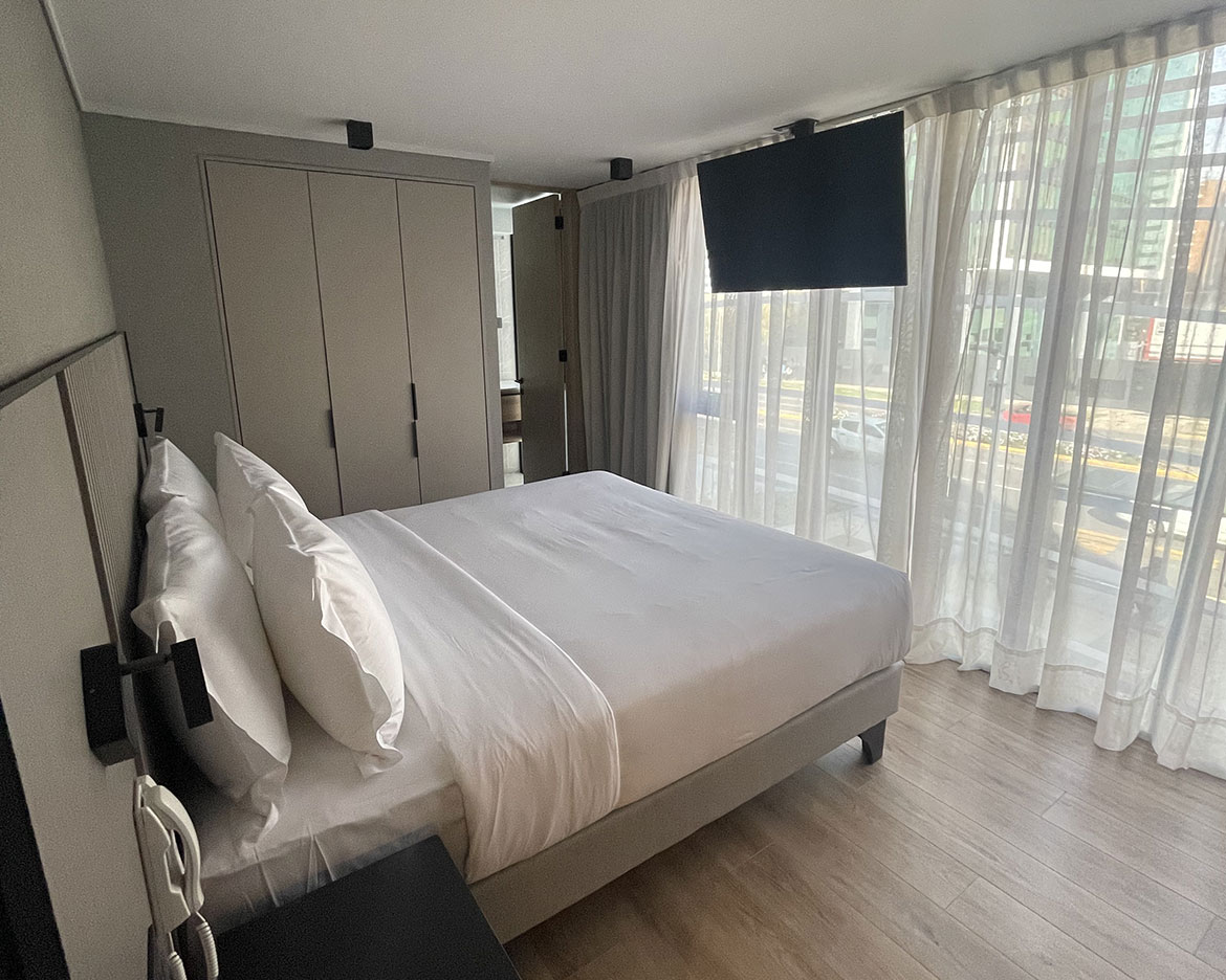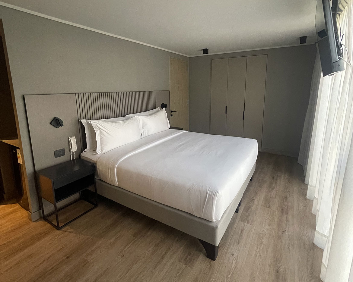 Habitación de 1 ambiente con cama King, ocupación máxima 2 personas. Disponible en modalidad normal y accesible.